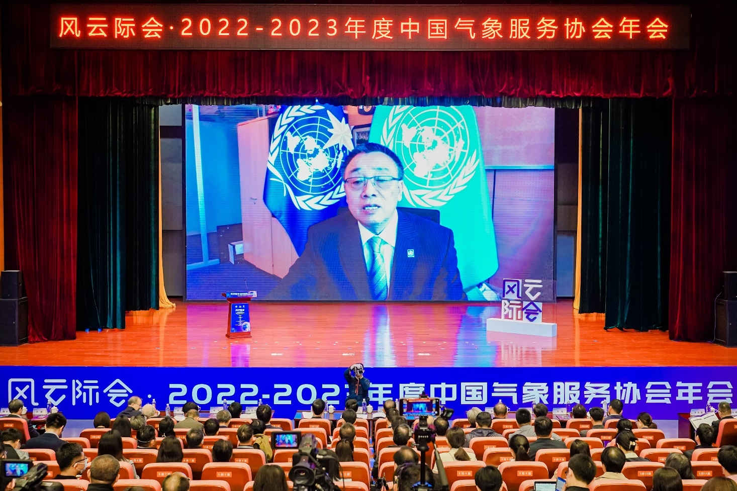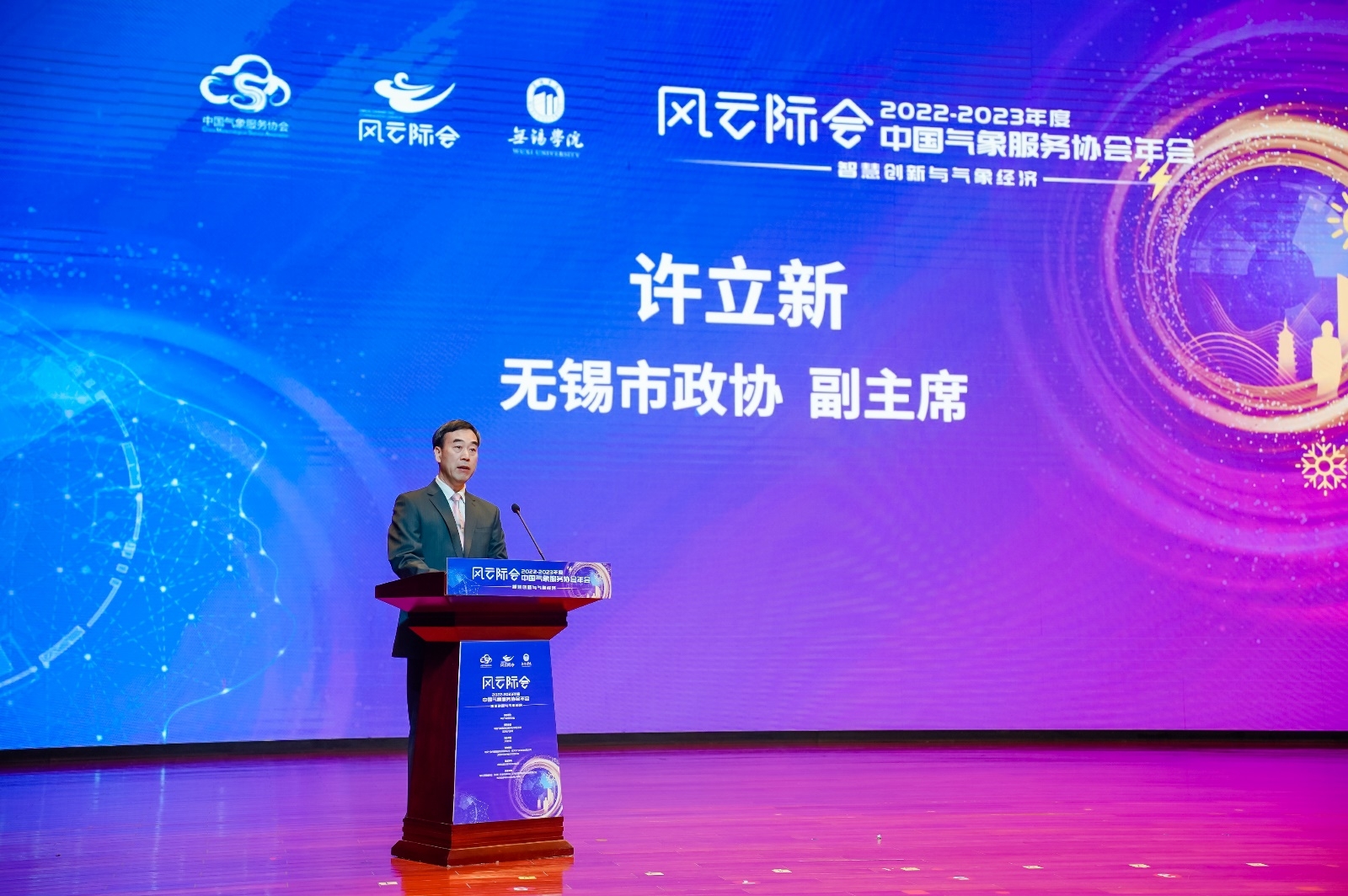 4月25-27日,风云际会·2022-2023年度中国气象服务协会年会在我校隆重召开。国家减灾委员会秘书长郑国光、中国气象服务协会会长许小峰、中国气象局原副局长矫梅燕、中国气象局原副局长于新文、无锡市政协副主席许立新、江苏省气象局党组书记翟武全、校长张永宏、副校长徐军海等出席会议。中国气象局相关职能部门及直属事业单位领导、省(市)气象局领导,相关领域知名专家学者,高校科研院所、企业代表等600余人齐聚一堂,共同探讨气象科技创新发展趋势和路径。本届年会以“智慧创新与气象经济”为主题。