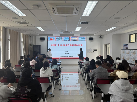 4月1日,无锡学院明湖人才・科技沙龙第 69 期在尚善楼 401 举行,特邀中山大学程晓教授作题为《北极天-空-冰-海-潜立体探测技术进展》的专题报告。报告会由大气与遥感学院院长卢楚翰主持,学院师生到场聆听学习。