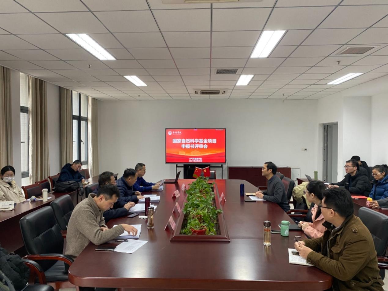 为提升2024年度国家自然科学基金项目申报书质量,2月28日下午,大气与遥感学院举行了国家自然科学基金项目申报书评审会。会议邀请了复旦大学吴志伟教授、南京信息工程大学智协飞教授、王让会教授以及河海大学冯涛教授担任评审专家。会议由院长卢楚翰主持。