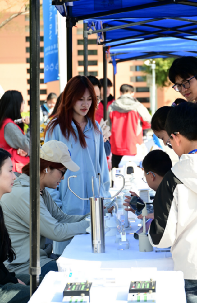 互动体验区设置四大板块:科普展区陈列人影作业车、百年气象仪器等实物;实验工坊开展“自制百叶箱”“智慧气象观测”等实践项目;知识竞赛区通过扫码答题、擂台抢答等形式吸引青少年参与;研学区由学生志愿者带领解读卫星云图、制作气象仪器。春星小学的鲍薇儿在体验后感叹:“气象预警不仅是科学家的课题,每个人都应贡献力量!”侨谊中学董俊泽则表示:“气象科学是守护生活的无形力量。”