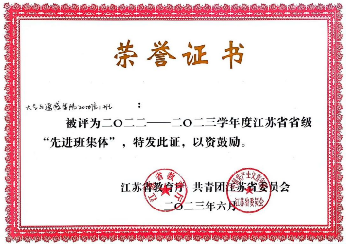 先后获评2022-2023学年江苏省省级“先进班集体”