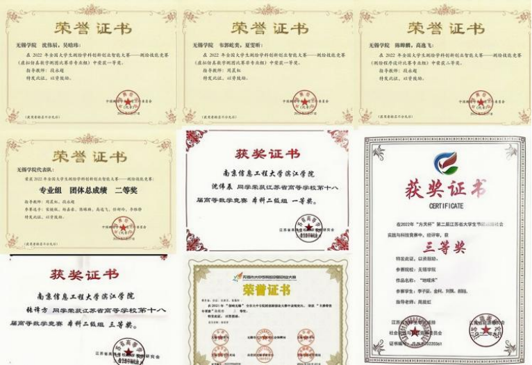 班级成员自入学以来,积极参加各类比赛与学科竞赛,拓展学科素养,在班级内部形成比学赶超之风。自大一以来,班级成员共有14人获得国家级奖项,其中班级成员沈伟辰、吴晗玮、韦郭屹弈、夏雯昕获2022年全国大学生测绘竞赛一等奖,高逸飞获2022年全国大学生测绘竞赛二等奖与全国大学生英语竞赛二等奖,庄家富、杨珺、夏雯昕、韦郭屹弈获2022易智瑞杯中国大学生GIS大赛三等奖;11人获得包括江苏省高等数学竞赛、节能减排与科技竞赛、LSCAT杯江苏省笔译大赛在内的省级奖项,3人获得市级竞赛奖项。