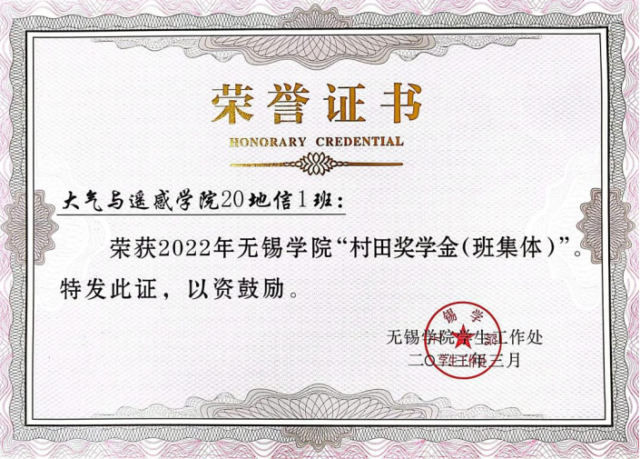 2022年无锡学院村田奖学金(班集体)