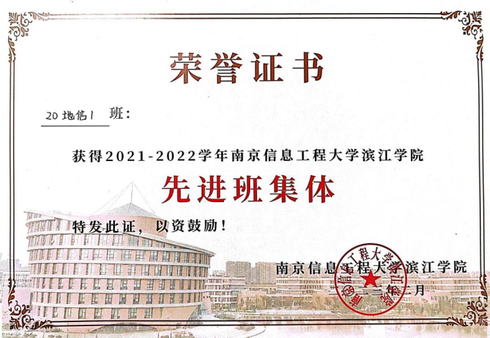 2021-2022学年青年大学习校优秀团支部、2021-2022学年校优秀班集体。