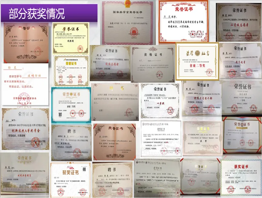 彭晨在专业学习上深挖狠抓,多门专业课取得优异成绩。除了重视学习之外,他还积极参加学科竞赛,截止至今已累计获得包括国家奖学金、易智瑞杯中国大学生GIS软件开发竞赛优胜奖在内的国家级荣誉3项,东方财富杯省赛二等奖、无锡市“创响无锡”全市大中专院校创新创业大赛三等奖等在内的省市级荣誉7项,校级荣誉26项,已累计发表学术论文2篇。