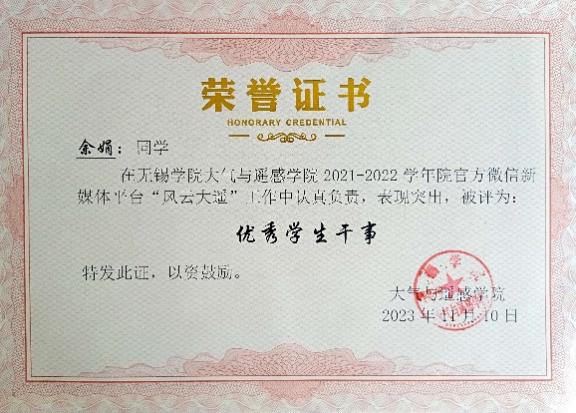 总有人问:那些不曾被聚光灯眷顾的晨昏,是否终将被时间封存?大气与遥感学院2021级遥感1班的余娟用四载星霜作答:当自习室的最后一盏灯熄灭在午夜,当演算纸堆叠成时光的等高线,当蛰伏的星子终于照亮前路——她以专业前茅的蝉鸣作序,用华中农业大学的录取通知书为青春写下惊艳注脚。且看这位不曾佩戴勋章的攀登者,如何将平凡岁月淬炼成登云之梯。