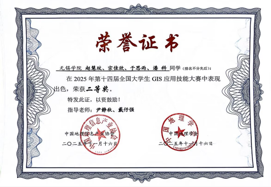全国大学生GIS应用技能大赛是我国地理信息科学领域规模最大、影响力最广的国家级学科竞赛,已成为检验高校相关专业教学质量与人才培养成效的重要平台。学校将以此次获奖为契机,进一步深化“以赛促教、以赛促学、以赛育人”的人才培养机制,持续搭建高水平实践创新平台,鼓励更多学子参与学科竞赛、投身专业实践,在实战中锤炼本领、提升综合素养,不断推动应用型人才培养质量迈上新台阶。