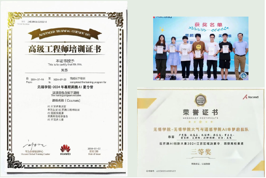 步入大二,随着专业知识的积累,我渴望对专业进行更深入的探索。恰逢学院为提升学生创新实践能力,与华为公司联合筹办“昇腾AI开发者暑期夏令营”。我毫不犹豫地报名参加,探索“气象+人工智能”这一前沿领域。在夏令营期间,我全心投入理论课程与实验操作,详尽记录知识要点与技术关键,并反复调试代码、训练模型。在夏令营结束时,我获得了“高级工程师培训证书”,这张证书不仅是对我学习能力的认可,更为我后续的专业学习与科研实践指明了崭新的航向。