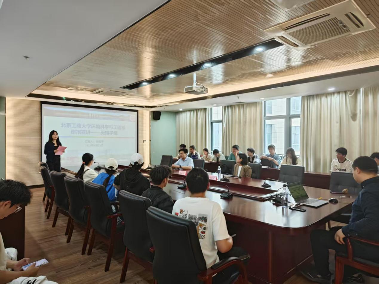 宣讲会上,张晗宇、闫美琳两位教授深入分析了当前考研形势,介绍了北京工商大学轻工学院的专业特色、人才培养、招生优惠政策等内容。张教授结合无锡学院人才培养方案指出环境科学、资源与环境两个研究生专业与我校环境科学与工程、大气科学、遥感科学与技术、地理信息科学等专业有很多互通指出,他们鼓励同学们踊跃报考北京工商大学。接着,侯正姿作为北京工商大学环境科学与工程专业拟录取学生,结合自身备考经历分享了学习心得。随后,无锡学院师生与两位教授就研究生培养方向和备考思路进行交流讨论。最后,徐浩文老师鼓励大家积极看待考研升学为学业生涯带来的新改变,不畏考验、不留遗憾,充分激发自己的无限潜力。