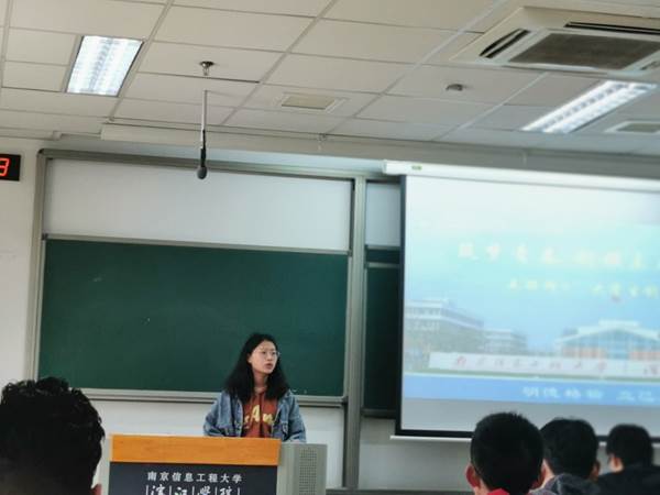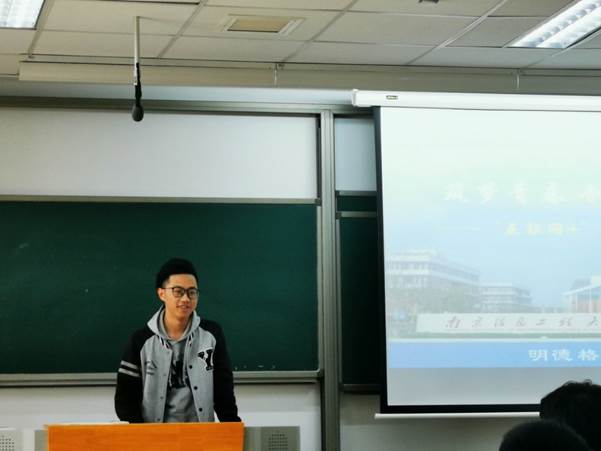 接下来,吴颖同学,根据自己的大创经历,从团队分工协作的角度和策划书撰写的细节问题,与同学们分享了一些经验和心路历程。她鼓励大家积极参与“互联网+”,勇于尝试。
