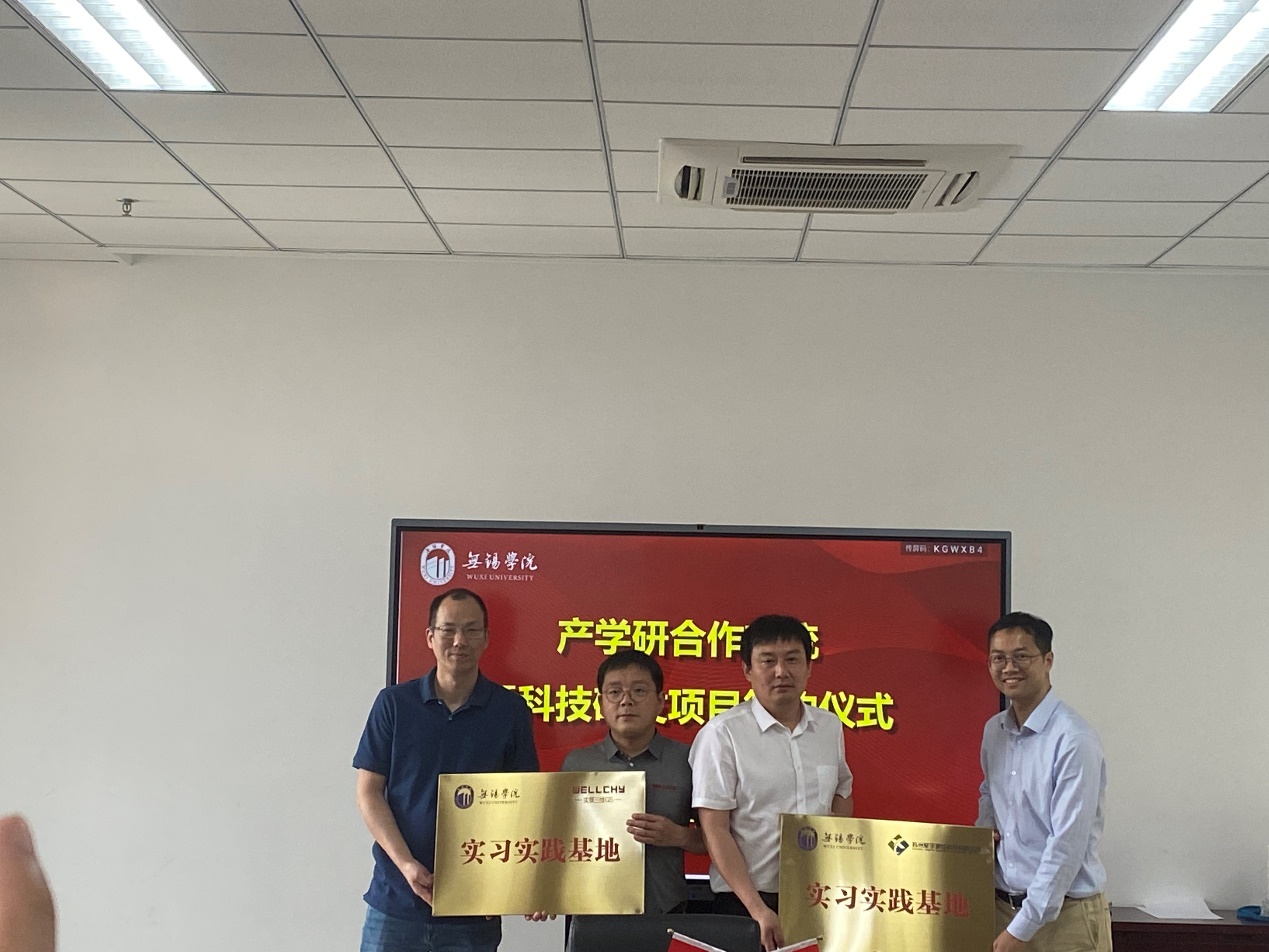 会上,学院与两家企业围绕实训基地、学生就业、项目合作等方面进行了深入讨论。随后双方分别签署校企合作协议和科技研发项目。卢楚翰、刁一伟、杨中元和彭晨光共同为两家实习实践基地揭牌。