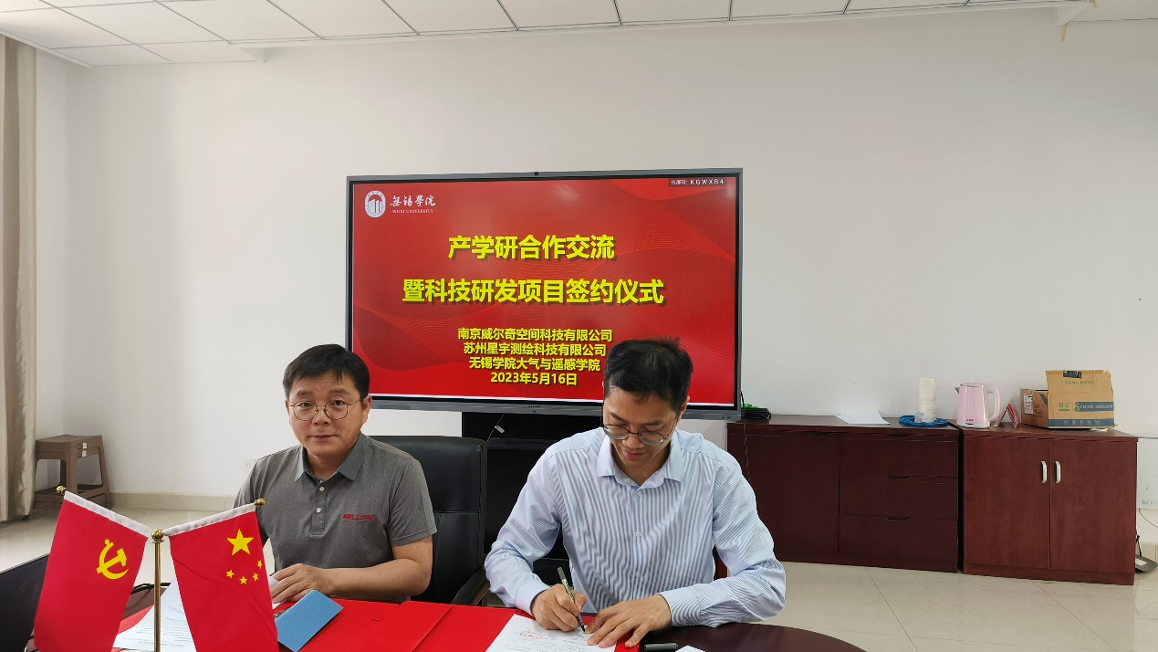 2023年5月16日,大气与遥感学院于尚善楼507会议室举行与南京威尔奇空间科技有限公司、苏州星宇测绘科技有限公司的产学研合作交流暨科技研发项目签约仪式,院长卢楚翰,院长助理刁一伟及相关专业教师出席会议,会议由蔡鹏老师主持。