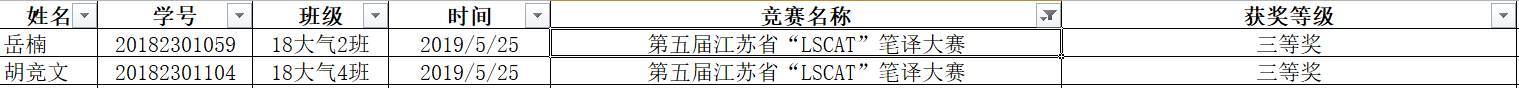 第五届江苏省“LSCAT”笔译大赛获奖名单