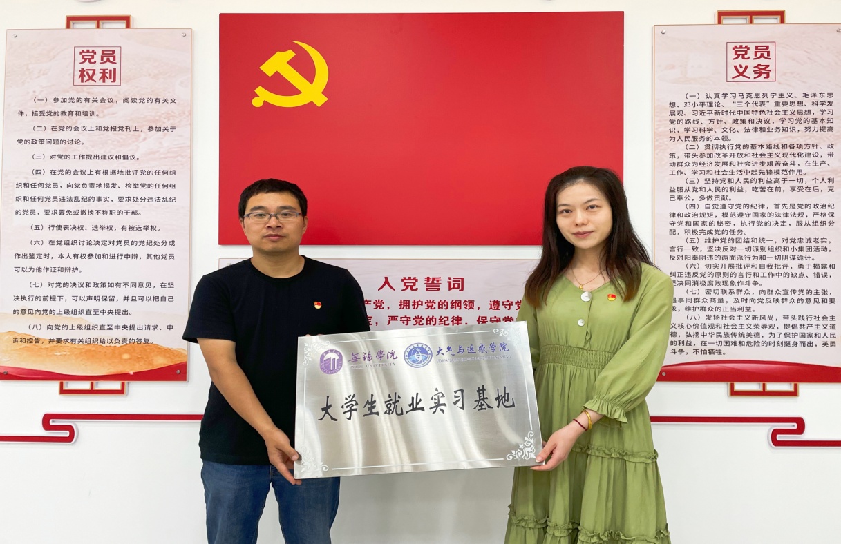 范雪与周彬对学生实习就业、实践教学、“双师型教师”培育和劳动教育课程创新等领域的合作可行性进行探讨。无锡市气象局表示希望未来与大气与遥感学院展开更多合作,并为我院学生就业实习提供条件。会上,范雪为无锡市气象局授牌“大学生就业实习基地”。
